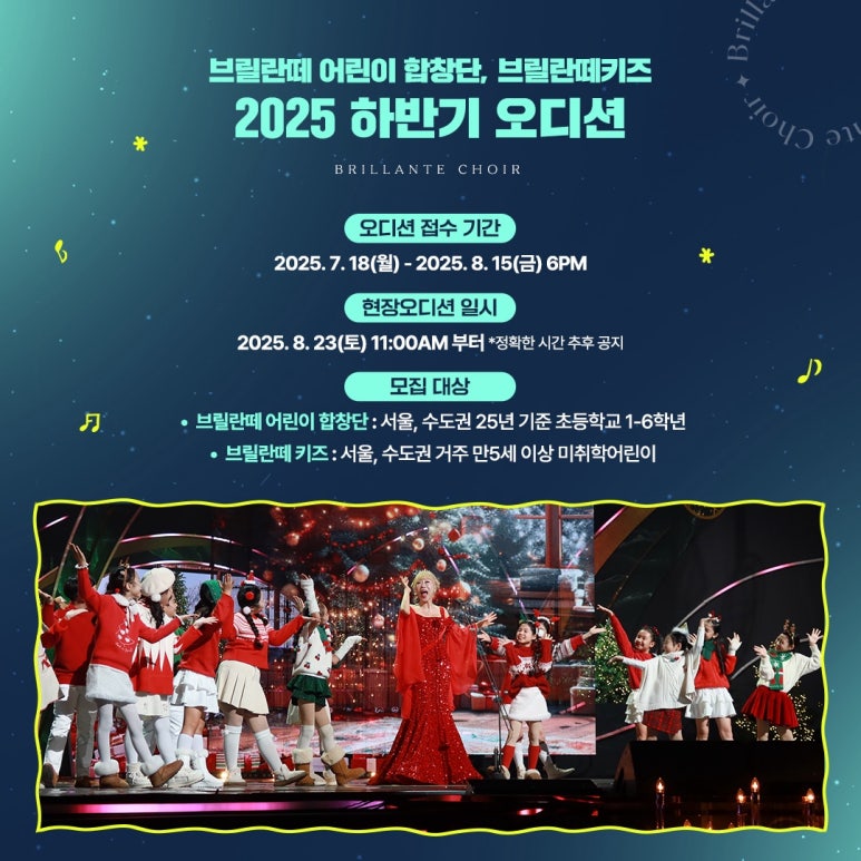 공지 2025 브릴란떼어린이합창단 하반기 오디션 모집 안내 -*